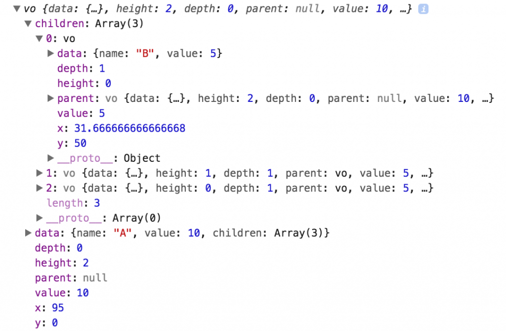 Next, we call the layout function, passing it the root node. The layout function adds x and y properties to each node in the model.